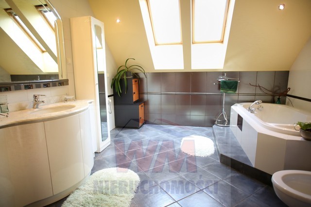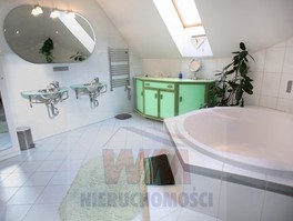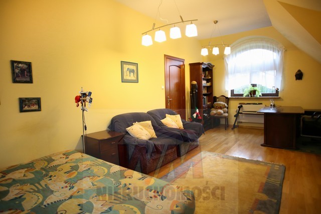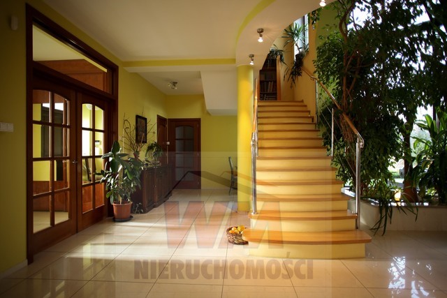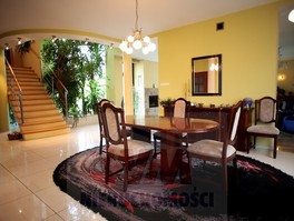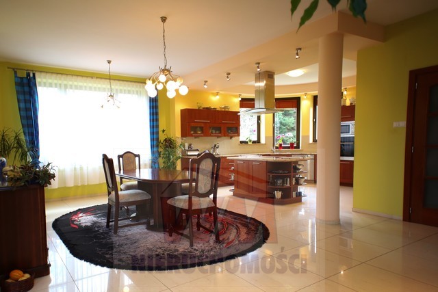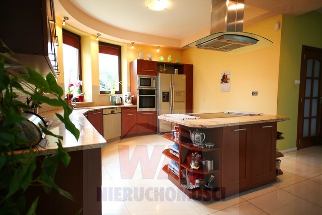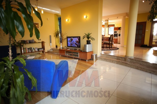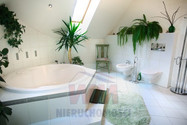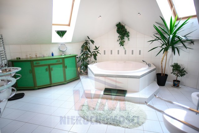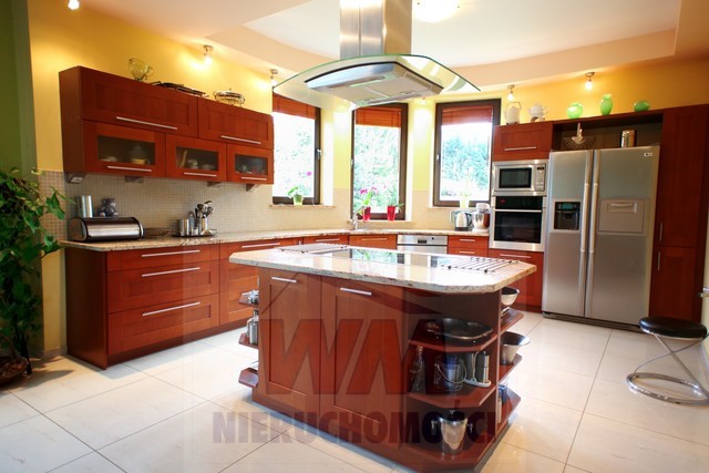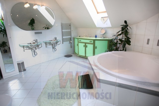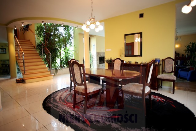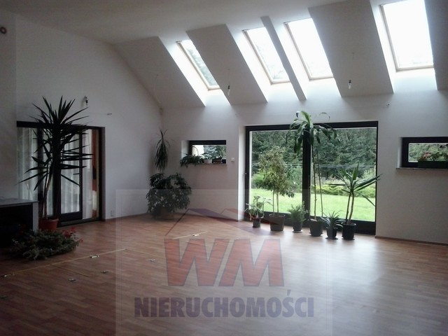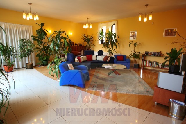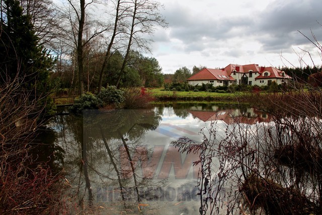 Rezydencja położona na dużej ponad 2 hektarowej działce granicząca z rzeką Jeziorką w gminie Pniewy. Powierzchnia całkowita domu 623 m2, użytkowa 511 m2. Na parterze znajduje się salon z kominkiem, kuchnia z wyspą połączona z jadalnią, przestronny holl, garderoba, łazienka, kotłownia, garaż na 2 samochody. Z salonu wyjście przez duże oszklone drzwi na taras i do ogrodu. Na parterze znajduje się również część rekreacyjna pomieszczenie o powierzchni 139 m2, w której jest basen, jacuzzi, sauna, łazienka. Wszelkie urządzenia potrzebne do uruchomienia basenu , jacuzzi są w posiadaniu właściciela. Na piętrze jest 4 sypialnie, 3 łazienki. Jedna z sypialni posiada dużą łazienkę i garderobę. Na parterze podłogi wyłożone gresem i granitem, ogrzewanie podłogowe, schody i podłogi na piętrze parkiet dębowy. Dom jest widny, przestronny, ciepły. Wykonany z cegły porotherm, podwójnie docieplony styropianem, pokryty dachówką ceramiczną. Drzwi i okna drewniane, mahoniowe antywłamaniowe. Dom posiada wszelkie instalacje tv, alarm, monitoring, centralny odkurzacz. Ogrzewanie gazowe, nowoczesny piec Buderus, własne ujęcie wody, przydomowa oczyszczalnia. Działka ogrodzona bardzo ładnie zagospodarowana, znajdują się 3 zarybione stawy. Drzewa i krzewy liściaste i iglaste, jak również owocowe borówka amerykańska, winogrona itp. Spokojna okolica w otoczeniu lasów, tereny czyste ekologicznie. Dobra komunikacja z Warszawą około 40 km trasą S7 w kierunku Krakowa. Oferta godna polecenia, zapraszam do oglądania i współpracy inne biura nieruchomości.